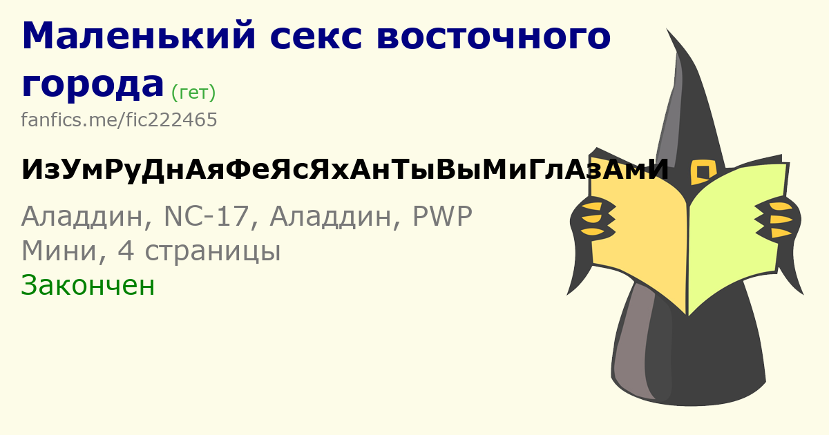 | шамсена Анонимный автор Аладдина в современном арабском городе.вы не горюйте и не кипятитесь. вон, Алладин тоже мало что может сделать. а ведь условные немки ещё и страшные... Может, вам дальше приключения придумать? извините за непрошеный совет. И как принято в современных сказках, зацензурировать любовь арабов к сладким мальчикам? | |